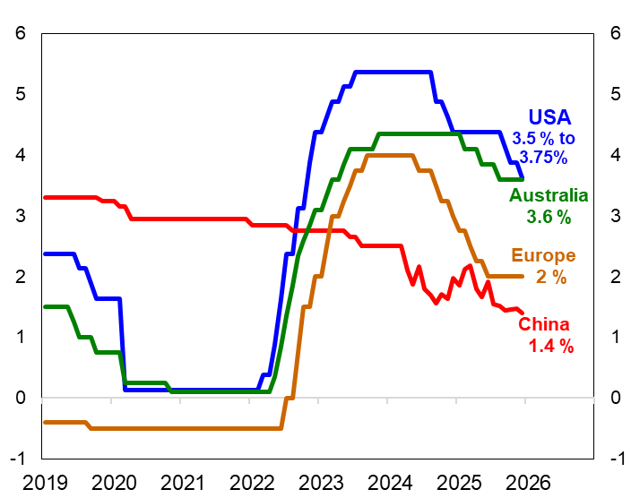 Investors have taken encouragement from falling global interest rates (Chart 3). Most central banks lowered their cash interest rates in 2025 given that inflation is now near their circa 2% targets.