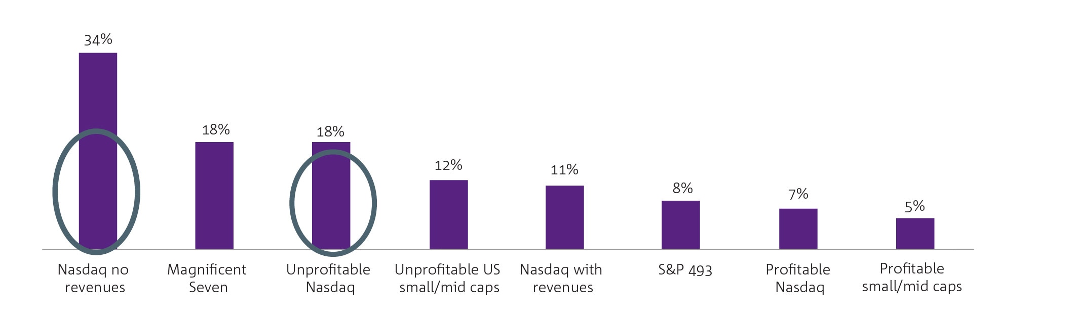 Chart 3: Companies with no revenues or profits have outperformed